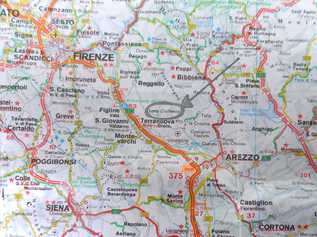 高松発→羽田→フランクフルト→フィレンツェの往復航空券も早割なら半額。フィレンツェ空港でレンタカーを借りてトスカーナ州南端、マレンマ地方の山上の町アルチドッソ(2泊)までひとっ走り。ワインの里モンタルチーノ、キャンティ地方を経由してアレッツォ(2泊)の骨董市まで。ここでレンタカーを返してフィレンツェ(4泊)までは電車で移動の8泊10日。孫達との喧噪から解放され、家内と二人の息抜き旅です。