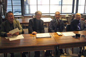 例年通り鈴木雄登さんの司会で始まり、続いて浜口副会長が谷山会長に代わって挨拶されました。最初に昨年以降に亡くなられた管理部関係の6名の方々のお名前をあげられ全員で黙とうをしてご冥福をお祈りした後、谷山会長の近況についての報告がなされました。