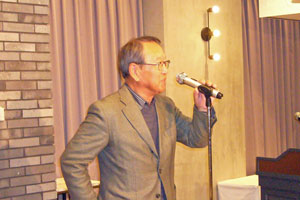 そして金丸M友会会長のご挨拶と乾杯の音頭です。その後は食事と歓談で夫々楽しい時間を過ごしました。去年までと違い、他のお客さんに遠慮する事もなく、盛り上がった会になりましたので、来年以降もこのホテルで開催されるだろうと思われました。