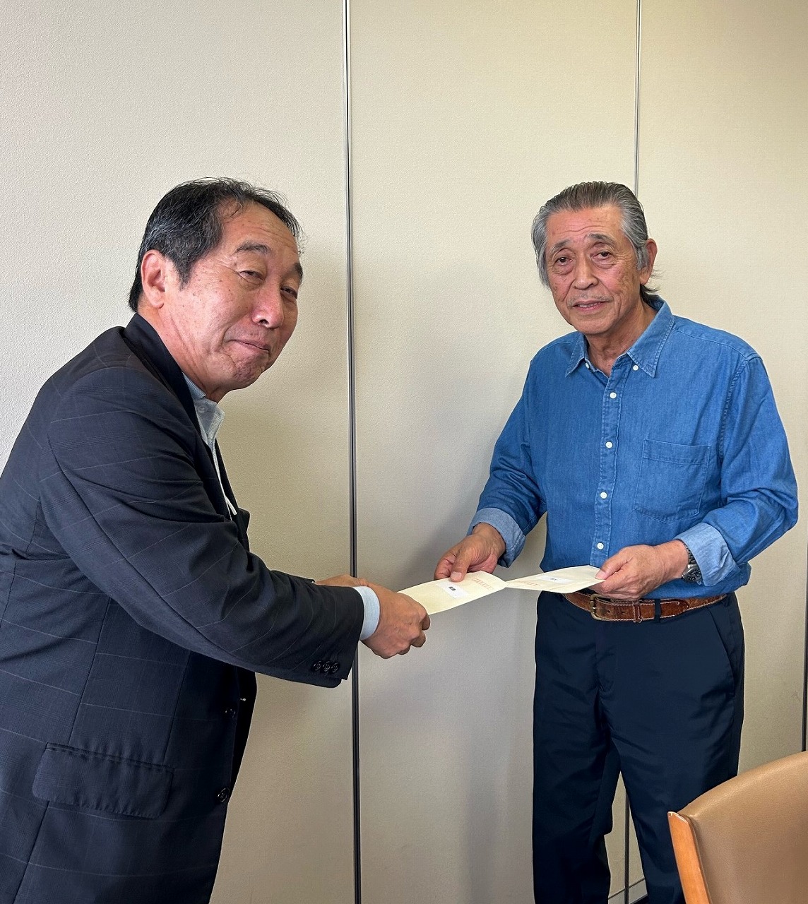 | 幹事の下山さんから表彰される岡本さん |