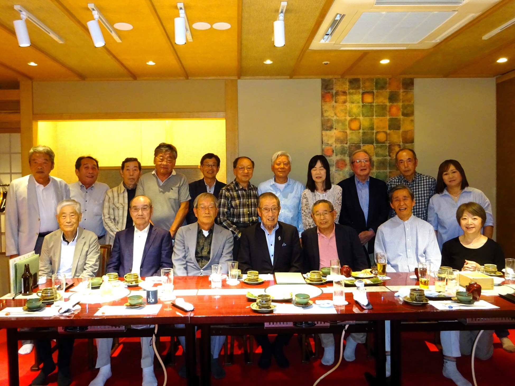 老人会の記念写真の様だと言う方もいますが、OB/OG会ですので、老人の集まりになります。