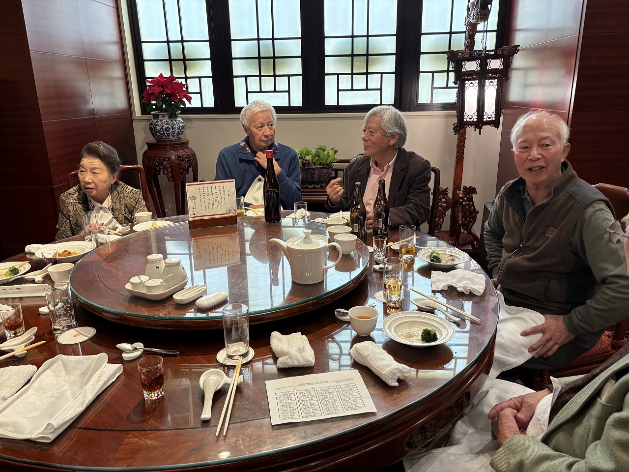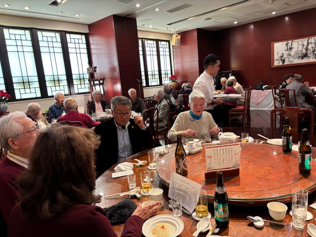 五つのテーブルに分かれ中華料理を食べながら会話を楽しみ、またいつかの再開を期してお開きとなりました。